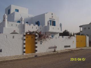 Villa 1: pour 1-6 personnes, construction 2007. 170 m2 habitable, au bord de la plage (rez-de-chaussée et premierétage) 3 chambres, chacune avec un grand lit, 2 salles de bains, un salon et un cafémaure. Cuisine équipée. Un passiot traditionelle.